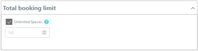 This section will prevent any of your Booking offerings having more than a set number of spaces available. Unchecking the the checkbox will mean the number set will prevent more than the set numbers spaces in any of the booking spaces available.
