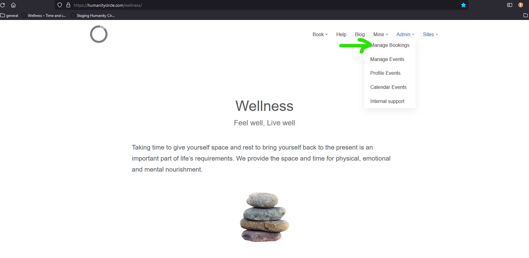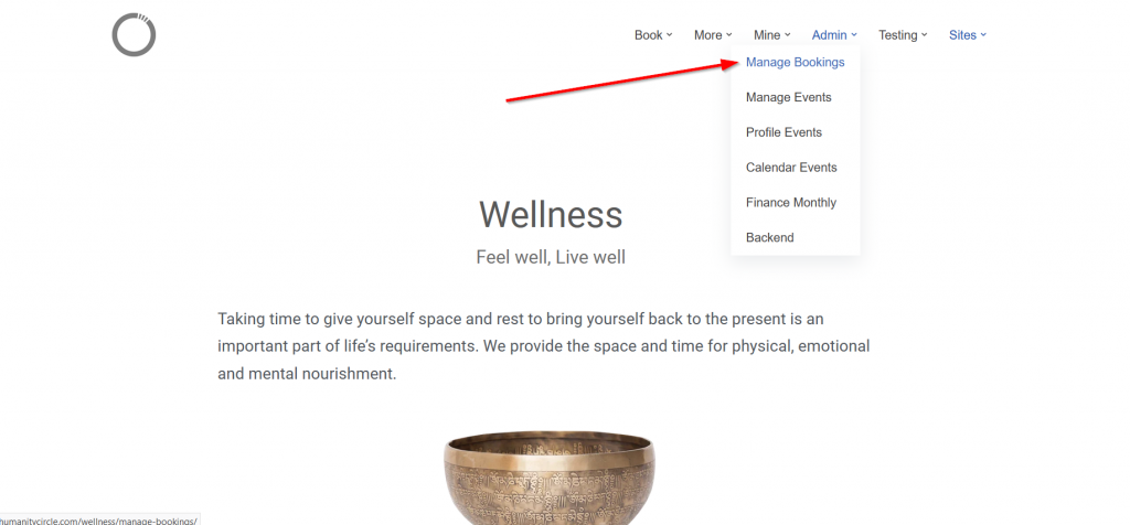 - Select Manage Bookings in the top right hand menu under Admin ->Manage Bookings