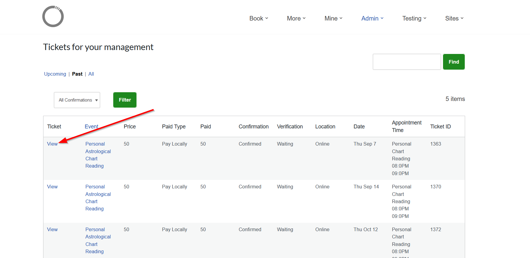 - You will be directed to the website backend where you will find your bookings